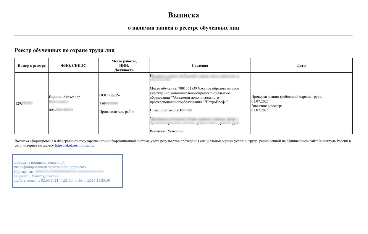 Наши услуги включают в себя не только обучение, но и консультационную поддержку по вопросам ОТ, помощь в разработке локальных нормативных актов и проведении специальной оценки условий труда. Наша цель - обеспечить всех современным и качественным профобразованием, поэтому наше обучение организовано так, чтобы люди из любой точки мира могли обучиться основам ОТ! Приобретенная по итогам освоения программы квалификация позволит вам подтвердить профессиональные компетенции и получить допуск к производству работ. По окончании курсов участники получают удостоверение специалиста, подтверждающее их квалификацию, что повысит их навыки и улучшит состояние ОТ на предприятии. При записи на наши курсы наличие или отсутствие диплома об образовании не имеет значения.